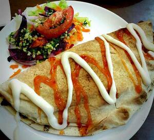 Your choice of lamb chicken or falafel cooked with tomatoes herbs spinach mushrooms onions Berber spices wrapped in the thin Kebab bread with olives mozzarella and cream cheeses then baked in Ali Babas oven. For general inquiries please call us at 64-7-348-2983 or via email at infoalibabastunisiancuisineconz. Ali Babas Tunisian Cuisine.