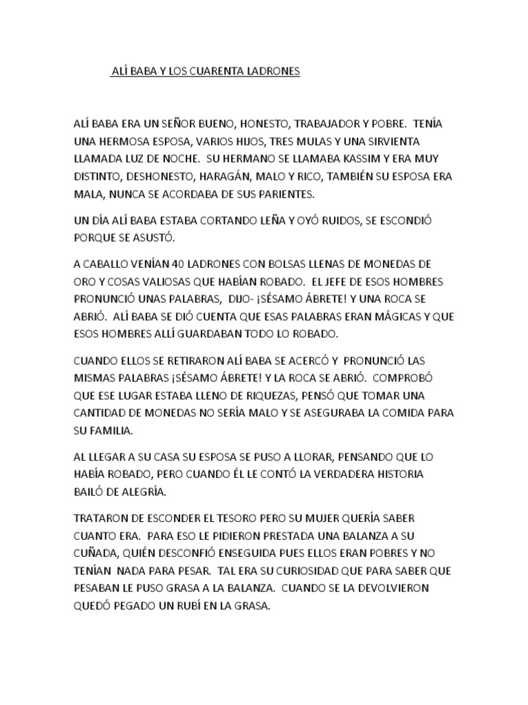 Su historia suena inverosímil porque si su padre fuera un hombre tan poderoso él no viviría en Colonia Roma ni. 8 ali baba y los 40 ladrones - cuentos infantiles - 1226. Respetando la prosodia indicada por todos los signos.