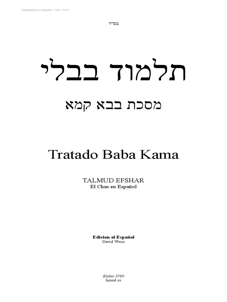 Tratado Baba Kama En Espanol Talmud Babli Pdf Pdf Talmud Judaismo